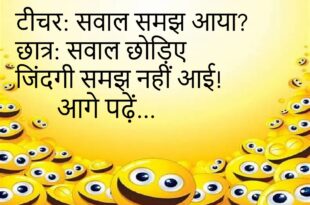 मां: रिज़ल्ट कैसा आया? बेटा: उम्मीद से बेहतर उम्मीद ही कम थी! 😂 ******************************************* पत्नी: मुझसे क्या सीखोगे? पति: चुप रहना सबसे बड़ा ज्ञान है! 🤐🤣 ******************************************* दोस्त: खुश कैसे रहते हो? पप्पू: ज्यादा सोचता नहीं इसलिए परेशान भी नहीं! 😄 ******************************************* टीचर: सवाल समझ आया? छात्र: सवाल छोड़िए जिंदगी समझ नहीं आई! 😜 ******************************************* पत्नी: मेरी आवाज कैसी है? …