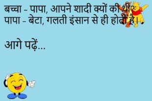 टीचर – पढ़ाई क्यों नहीं करते? छात्र – क्योंकि किताब भी कहती है, “Stay cool”।😊😊😊😊 ****************************************** पत्नी – मैं मोटी हो गई हूँ क्या? पति – नहीं, तुम तो “डेटा पैक” हो गई हो।😊😊😊😊 ****************************************** डॉक्टर – आपको रोज़ाना व्यायाम करना चाहिए। मरीज – मैं करता हूँ, बीवी से बहस।😊😊😊😊 ****************************************** पति – तुम्हारा चेहरा क्यों उतर गया? पत्नी – …