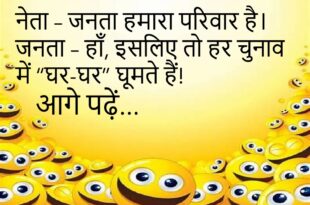 नेता – हम महंगाई कम करेंगे!जनता – पहले बताओ, बढ़ाई किसने थी? 😅 ************************************ पत्रकार – आप जनता के लिए क्या कर रहे हैं?नेता – सोच रहे हैं… अगली रैली में बताऊँगा 😂 ************************************ एक नेता बोला – “हम युवाओं को रोजगार देंगे!”पीछे से आवाज़ – “पहले Wi-Fi दे दो, फिर सोचेंगे!” 😜 ************************************ नेता – हम हर घर में …