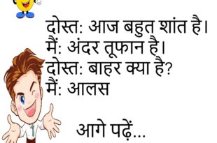 दोस्त: इतना लेट क्यों उठा? मैं: अलार्म ने धोखा दिया। दोस्त: कैसे? मैं: बजा ही नहीं… मेरे सपने में 😴 *************************************** पत्नी: मैं क्या हूँ तुम्हारे लिए? पति: Wi-Fi। पत्नी: मतलब? पति: दूर होते ही गुस्सा 😄 *************************************** टीचर: क्लास में ध्यान क्यों नहीं? स्टूडेंट: सर, दिमाग अपडेट हो रहा है। टीचर: कब तक? स्टूडेंट: एग्जाम तक 🤯 *************************************** माँ: …
