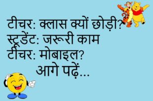 दोस्त: टाइम क्यों नहीं है?लड़का: बिज़ीदोस्त: मोबाइल से?😊😊😊😊 ********************************** पिता: होश में हो?बेटा: पूरापिता: शक है😊😊😊😊 ********************************** माँ: जल्दी आनाबेटा: आ जाऊँगामाँ: कल नहीं😊😊😊😊 ********************************** टीचर: पढ़ाई पर ध्यान दोस्टूडेंट: देता हूँटीचर: दिखाओ😊😊😊😊
