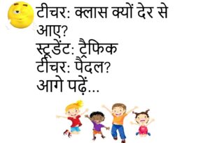 टीचर: क्लास क्यों देर से आए?स्टूडेंट: ट्रैफिकटीचर: पैदल?😊😊😊😊 ********************************** दोस्त: मूड कैसा है?लड़का: ठीकदोस्त: झूठ😊😊😊😊 ********************************** पिता: समझदारी दिखाओबेटा: पूरीपिता: फिर गलती क्यों?😊😊😊😊 ********************************** माँ: पढ़ाई हो गई?बेटा: लगभगमाँ: मतलब?😊😊😊😊 ********************************** टीचर: आखिरी सवालस्टूडेंट: सबसे मुश्किलटीचर: वही😊😊😊😊