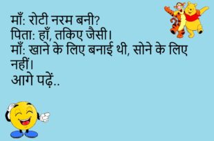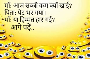 माँ: सब्जी दोबारा गरम कर दूँ?पिता: नहीं, यही ठीक है।माँ: मतलब पहले से खराब है?😊😊😊😊 ********************************** पत्नी: आज मीठा कैसा लगा?पति: बचपन याद आ गया।पत्नी: बचपन में भी इतना मीठा नहीं खाया होगा।😊😊😊😊 ********************************** माँ: मसाला सही है?पिता: बहुत तेज़ है।माँ: ज़ुबान के लिए या पड़ोसियों के लिए?😊😊😊😊 ********************************** पत्नी: खाना जल्दी बन गया ना?पति: हाँ, बहुत जल्दी।पत्नी: तभी तो …