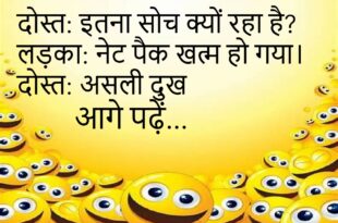 माँ: सब्जी खत्म करो। बेटा: स्टोरी डाल दी। माँ: पेट में डाल 😅 ************************************** डॉक्टर: तनाव कम करो। मरीज: व्हाट्सएप छोड़ दूँ? डॉक्टर: शुरुआत करो 😜 ************************************** पति: गिफ्ट कैसा लगा? पत्नी: रसीद दिखाओ। पति: प्यार ही काफी 😆 ************************************** टीचर: सबसे आसान विषय? स्टूडेंट: छुट्टी। टीचर को भी पसंद 😅 ************************************** दोस्त: इतना सोच क्यों रहा है? लड़का: नेट …