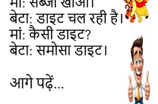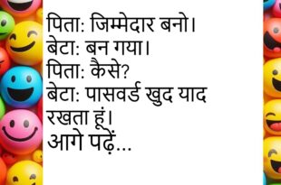 पिता: खर्च कम करो। बेटा: कोशिश कर रहा हूं। पिता: कैसे? बेटा: ऐप डिलीट करके।😊😊😊😊 ********************************* दोस्त: दिमाग कहां खोया? लड़का: ट्रैफिक में। दोस्त: मिला? लड़का: हॉर्न में दब गया।😊😊😊😊 ********************************* टीचर: सबसे बड़ा जादू क्या है? स्टूडेंट: छुट्टी। टीचर: क्यों? स्टूडेंट: आते ही मुस्कान आ जाती है।😊😊😊😊 ********************************* मां: इतना लेट क्यों सोया? बेटा: जिम्मेदारी थी। मां: कैसी? बेटा: …