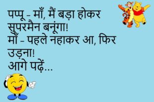 पत्नी – मैं मायके जा रही हूँ! पति – रास्ता मिल जाए तो फोन कर देना, मैं भी आ जाऊँगा 😂 *************************************** गर्ल – तुम इतने साइलेंट क्यों हो आजकल? बॉय – क्योंकि तुम्हारे आखिरी seen के बाद “reply” का इंतज़ार कर रहा हूँ! *************************************** बच्चा – पापा, गुस्सा कैसे कंट्रोल करें? पापा – मोबाइल की बैटरी 1% कर दे …