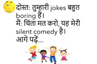 पप्पू: मम्मी, मैं स्कूल नहीं जाऊँगा। मम्मी: क्यों बेटा? पप्पू: क्योंकि sleep mode on है।😂😂😂😂 *************************************** टीचर: तुम हमेशा late क्यों आते हो? छात्र: सर, punctuality over-rated है।😂😂😂😂 *************************************** दोस्त: तुम्हारा नया haircut cool है। मैं: हाँ, offline shopping का latest version है।😂😂😂😂 *************************************** पत्नी: तुम हमेशा टीवी क्यों देखते हो? पति: देख रही हूँ, यह हमारा relationship maintenance mode …