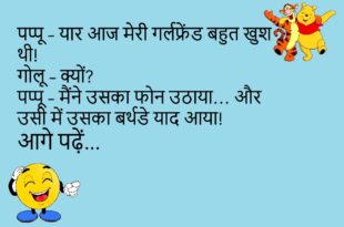 पप्पू – यार मेरा मोबाइल बहुत स्लो चल रहा है!गोलू – शादी करा ले, फिर मोबाइल ही सबसे तेज़ चलेगा! 🤣 ************************************************ टीचर – बताओ, honesty क्या होती है?पप्पू – जब मां पूछे “मोबाइल कहाँ है?” और आप सच में बता दो! 😂 ************************************************ पत्नी – आजकल तुम मुझसे प्यार नहीं करते!पति – अरे पगली, अब तो नेटफ्लिक्स भी jealous …