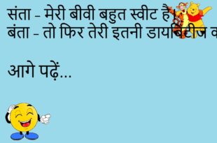 डॉक्टर – आपको कैसे पता चला कि आपको शुगर है? पप्पू – जब मैं चींटी पकड़ने गया तो वो मुझे देखकर भाग गई।😊😊😊😊 ********************************************* पत्नी – सुनिए, आप मुझे कहां ले जाओगे शॉपिंग के लिए? पति – व्हाट्सएप पर… वहां सब कुछ दिखा दूंगा।😊😊😊😊 ********************************************* टीचर – बताओ सबसे तेज़ क्या होता है? छात्र – सर, नींद… आंख बंद करो …