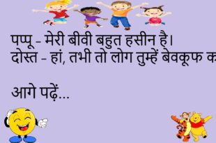 पत्नी – मुझे घूमने जाना है। पति – ठीक है, पंखा घुमा लो।😊😊😊😊 ********************************************* पप्पू – भगवान, मुझे नौकरी चाहिए। भगवान – बेटा, पढ़ाई की है? पप्पू – नहीं, पर जुगाड़ का कोर्स किया है।😊😊😊😊 ********************************************* टीचर – पप्पू, तुम क्लास में क्यों सो रहे हो? पप्पू – सर, आपकी क्लास में ही तो नींद आती है।😊😊😊😊 ********************************************* पति – …