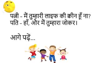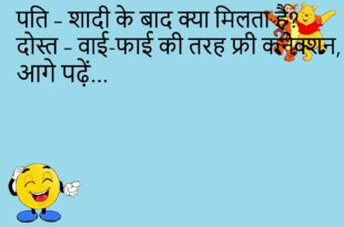 पप्पू – सर, ये जीवन बीमा क्या होता है? टीचर – शादी से पहले जो जोश होता है, वही।😊😊😊😊 ************************************* पत्नी – तुम मुझे अकेला छोड़कर मत जाना। पति – ठीक है, तो तुम भी मेरे साथ ऑफिस चलो।😊😊😊😊 ************************************* दोस्त – भाई, बीवी से लड़ाई हो गई। दूसरा – फिर? दोस्त – अब वो मायके चली गई है। दूसरा …