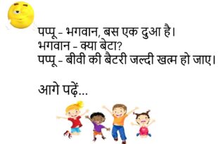 दोस्त – तेरा सपना क्या है? पप्पू – 100 रुपये का पेट्रोल सिर्फ 100 में मिल जाए।😊😊😊😊 *************************************** पत्नी – मैं मायके क्यों जाऊँ? पति – क्योंकि रास्ता वहीं जाता है।😊😊😊😊 *************************************** डॉक्टर – आपको क्या तकलीफ है? मरीज – डॉक्टर साहब, बीवी की हर बात दिल पे लग जाती है।😊😊😊😊 *************************************** टीचर – honesty का मतलब? पप्पू – शादी …