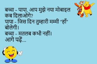 टीचर: बताओ सबसे ज्यादा गर्मी कहाँ होती है?छात्र: गर्मी स्कूल में होती है, जब टीचर डाँटते हैं।😂😊😊😂 *************************************** मोनू: मम्मी, मुझे क्रिकेट खेलने दो।मम्मी: घर में खेलो।मोनू: घर में भी क्रिकेट खेलते हैं, नेट पर।😂😊😊😂 *************************************** पप्पू: पापा, मुझे डिप्रेशन हो गया है।पापा: क्यों बेटा?पप्पू: क्योंकि मेरी फैमिली मुझसे ज्यादा स्मार्ट है।😂😊😊😂 *************************************** लड़का: तुम्हारे पापा कितने स्मार्ट हैं?लड़की: इतनी …