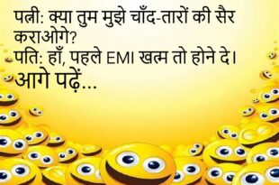 दोस्त: यार, तेरी बीवी बहुत बोलती है। पति: हाँ, लेकिन मैं तो उसे सुनता ही नहीं।😊😊😊😊 ******************************************* पत्नी: क्या तुम मुझे चाँद-तारों की सैर कराओगे? पति: हाँ, पहले EMI खत्म तो होने दे।😊😊😊😊 ******************************************* पप्पू: पापा, मैं बड़ा होकर क्या बनूँगा? पापा: बेटा, मोबाइल का चार्जर बन जा… सबको तेरी ज़रूरत होगी।😊😊😊😊 ******************************************* डॉक्टर: तुम रोज़ दौड़ा करो। मरीज: किसके …