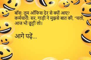 बेटा: पापा, मैं बड़ा होकर क्या बनूँ?पापा: जो भी बनो, मेरा Wifi पासवर्ड मत भूलना!😊😊😊😊 ************************************************ दोस्त 1: तुम्हारा नया स्मार्टफोन कैसा है? दोस्त 2: बड़ा स्मार्ट है, पर बैटरी भी बड़ी जल्दी खत्म होती है!😊😊😊😊 ************************************************ टीचर: पानी का रासायनिक सूत्र क्या है?छात्र: H2-Oh!😊😊😊😊 ************************************************ पप्पू: मम्मी, मुझे स्कूल नहीं जाना।मम्मी: क्यों बेटा?पप्पू: टीचर हमेशा मुझसे सवाल पूछती हैं, …