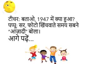 पप्पू: डॉक्टर साहब, मुझे भूलने की बीमारी हो गई है।डॉक्टर: कब से?पप्पू: कब से क्या?😊😊😊😊😊 ******************************* टीचर: बताओ, बिजली कहां से आती है?पप्पू: सर, जहां से बिल आता है!😊😊😊😊😊 ******************************* पत्नी: सुनो, मैं मायके जा रही हूं!पति: ठीक है, जाते वक्त लाइट बंद कर देना।😊😊😊😊😊 ******************************* पप्पू: यार, तुम्हारे घर में मच्छर नहीं आते?गप्पू: आते हैं, पर वाईफ की डांट …