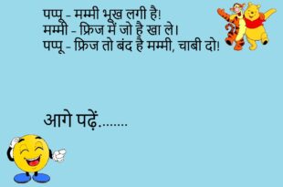 टीचर – बताओ बच्चो, आलसी का विलोम शब्द क्या होगा? छात्र – जल्दीसी! 😄 *********************************** डॉक्टर – आपको आराम की सख्त जरूरत है। मरीज – लेकिन डॉक्टर साहब, मेरी बीवी तो आराम ही नहीं करने देती। डॉक्टर – बहुत बढ़िया, फिर मैं आपकी बीवी को दवाई लिख देता हूँ! 😂 *********************************** पप्पू – मम्मी भूख लगी है! मम्मी – फ्रिज …