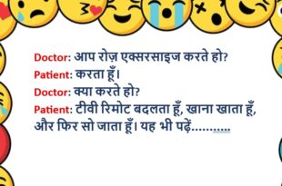 Patient: डॉक्टर साहब, जब मैं चाय पीता हूँ तो आंख में दर्द होता है। Doctor: तो चाय आंख में डालना बंद कर दो!🤣🤣🤣😝😝😝😆🤣 ************************************************************************************** Patient: डॉक्टर, मैं भूलने की बीमारी से परेशान हूँ। Doctor: कब से? Patient: कब से क्या?🤣🤣🤣😝😝😝😆🤣 ************************************************************************************** Doctor: आप रोज सुबह क्या करते हैं? Patient: डॉक्टर साहब, मैं योग करता हूँ, दौड़ता हूँ और हेल्दी खाना …