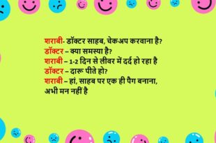 सुरेश- मैं तीर्थ यात्रा पर जा रहा हूं सोच रहा हूं दारू छोड़ दूं राजू- यह तो बहुत अच्छी बात है इसमें सोचने की क्या जरूरत है सुरेश- पर मेरे सारे दोस्त कुत्ते हैं, किसके पास छोडूं?😆🤣🤣🤣🤣😝😝😝 ************************************************************************************** मरीज (डॉक्टर से)- उम्र लम्बी करने का कोई तरीका बताइये डॉक्टर- शादी कर लो मरीज- इससे उम्र लम्बी हो जाएगी डॉक्टर- नहीं, …