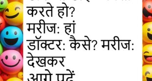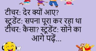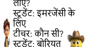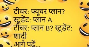टीचर: पढ़ाई कैसी चल रही है? स्टूडेंट: शानदार टीचर: कैसे? स्टूडेंट: नींद पूरी हो रही है 😂 *************************************** पत्नी: मैं सुंदर लग रही हूँ? पति: हां पत्नी: सच में? पति: अब सवाल मुश्किल हो रहे हैं 😆 *************************************** डॉक्टर: रोज़ चलते हो? मरीज: हां डॉक्टर: कितनी देर? मरीज: व्हाट्सएप तक 😜 *************************************** पापा: इतने नंबर कैसे आए? बेटा: दिमाग लगाया …