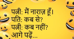 पत्नी: मेरी गलती बताओ। पति: याददाश्त कमजोर है। पत्नी: ठीक है।😊😊😊😊 ************************************* दोस्त: जॉब कैसी है? जवाब: सीखने को बहुत है। दोस्त: सैलरी? जवाब: कम।😊😊😊😊 ************************************* टीचर: बोर्ड पर क्या लिखा है? स्टूडेंट: सर, उम्मीद। टीचर: मिटा दो।😊😊😊😊 ************************************* पापा: मोबाइल कब छोड़ोगे? बेटा: शादी के बाद। पापा: तब और बढ़ेगा।😊😊😊😊 ************************************* पत्नी: मैं नाराज़ हूँ। पति: कब से? पत्नी: …