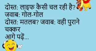 पत्नी: कैसी लग रही हूं? पति: बिल्कुल शांत पत्नी: जवाब दो! पति: जान प्यारी है 😜 **************************************** टीचर: क्लास में सो क्यों रहे हो? छात्र: सपनों में पढ़ाई चल रही है 😴😄 **************************************** दोस्त: मोबाइल कैसे टूट गया? जवाब: गिर गया दोस्त: कहां से? जवाब: उम्मीदों से 😂 **************************************** मां: बाहर क्यों जा रहे हो? बेटा: हवा खाने मां: दिमाग …