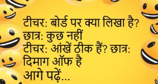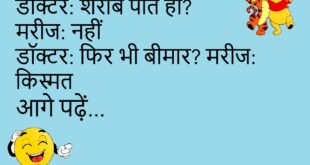 डॉक्टर: वजन बढ़ गया है मरीज: खुश होना चाहिए डॉक्टर: क्यों? मरीज: कुछ तो बढ़ रहा है 😂 **************************************** दोस्त: आज बहुत खुश लग रहे हो जवाब: हां दोस्त: वजह? जवाब: नींद पूरी हुई 😴😄 **************************************** पापा: झूठ क्यों बोला? बेटा: अभ्यास कर रहा था पापा: किसका? बेटा: राजनीति का 😜 **************************************** टीचर: बोर्ड पर क्या लिखा है? छात्र: कुछ …