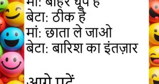 मां: बाहर धूप है बेटा: ठीक है मां: छाता ले जाओ बेटा: बारिश का इंतज़ार 😂 **************************************** दोस्त: फेवरेट दिन कौन सा? जवाब: रविवार दोस्त: क्यों? जवाब: सवाल नहीं होते 😄 **************************************** बॉस: स्मार्ट वर्क करो कर्मचारी: कर रहा हूं बॉस: कैसे? कर्मचारी: कम काम 😜 **************************************** पत्नी: प्यार करते हो? पति: बहुत पत्नी: कितना? पति: WiFi जितना 😆 **************************************** …
