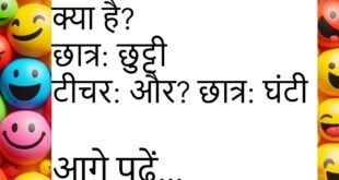पत्नी: सुनते क्यों नहीं हो? पति: सुन रहा हूं पत्नी: तो जवाब क्यों नहीं? पति: अनुभव से 😜 **************************************** टीचर: होमवर्क क्यों नहीं किया? छात्र: नेटवर्क नहीं था टीचर: किताब में? छात्र: दिमाग में 😅 **************************************** दोस्त: शादी कब करोगे? जवाब: अभी नहीं दोस्त: क्यों? जवाब: WiFi फ्री है 😄 **************************************** बॉस: देर क्यों आए? कर्मचारी: सपना पूरा कर रहा …