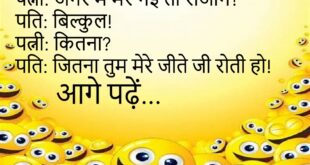 पति रोमांटिक मूड में: जानू, तुम मेरे लिए चाँद-तारे तोड़ लाओगी? पत्नी: हाँ लाऊँगी… बिजली का बिल भर दो तो!😊😊😊 *************************************** टीचर: बताओ, पानी का फॉर्मूला क्या है? बच्चा: H.I.J.K.L.M.N.O. टीचर: ये क्या बकवास है? बच्चा: मैम, आपने ही कहा था पानी H to O है!😊😊😊 *************************************** लड़की: तुम मुझे कितना प्यार करते हो? लड़का: शाहरुख खान जितना। लड़की: वाह! …