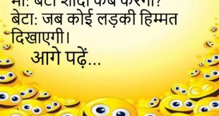 लड़का: मैं तुम्हारे लिए चांद तारे तोड़ सकता हूँ। लड़की: पहले मोबाइल का पासवर्ड तोड़ो।😊😊😊😊 **************************************** पप्पू: मेरा फोन बहुत गर्म होता है। गप्पू: कॉलिंग बंद कर के थोड़ी पढ़ाई किया कर।😊😊😊😊 **************************************** लड़की: तुमने मुझे क्यों प्रपोज नहीं किया? लड़का: डर था… कहीं हाँ ही ना बोल दो!😊😊😊😊 **************************************** पति: चाय बन गई? पत्नी: मेरा नाम रोबोट नहीं है। …