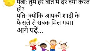 टीचर: बताओ भारत की राजधानी?पप्पू: सर, शादी के बाद मम्मी-पापा की!😊😊😊😊 ***************************************** पत्नी: तुम मुझसे कितना प्यार करते हो?पति: उतना, जितना तुम सोच भी नहीं सकती… और जितना मैं बता भी नहीं सकता!😊😊😊😊 ***************************************** दोस्त: यार, आजकल तुम्हारी हँसी गायब क्यों है?दूसरा: बीवी ने कहा ज्यादा हँसोगे तो शक करूँगी।😊😊😊😊 ***************************************** बच्चा: मम्मी, आज स्कूल नहीं जाना!मम्मी: क्यों?बच्चा: सपना आया …