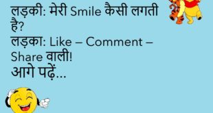 दादी: बेटा, शादी कब करोगे? पोता: When Loading Completes! 🤣 ************************************* पत्नी: तुम मुझसे प्यार करते हो? पति: Yes, but Terms & Conditions Apply! 😂 ************************************* टीचर: बेटा, Example दो! स्टूडेंट: “Homework” — Impossible Example! 😆 ************************************* लड़की: मेरी Smile कैसी लगती है? लड़का: Like — Comment — Share वाली! 🤣 ************************************* डॉक्टर: क्या Problem है? मरीज: दिल टूटा है, …