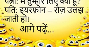 पति: मुझे अकेला रहने दो! पत्नी: तो जंगल चलो, वहाँ नेटवर्क भी नहीं मिलेगा! 😜 ************************************* बॉय: तुम्हें पहली बार कहां देखा था? गर्ल: Status Seen में! 😂 ************************************* डॉक्टर: कितनी बार कहा, Junk Food मत खाओ! पेशेंट: डॉक्टर साहब, ये junk नहीं, Instagram Food है! 🤣 ************************************* पत्नी: मैं तुम्हारे लिए क्या हूँ? पति: इयरफ़ोन — रोज़ उलझ जाती …