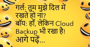 पत्नी: मुझे Shopping करनी है! पति: Wish List में डालो — Budget आएगा तब देखेंगे! 😜 ************************************** टीचर: बेटा, Late क्यों आए? स्टूडेंट: Alarm ने Snooze कर दिया — मैं क्या करूं! 😂 ************************************** गर्ल: तुम मुझे दिल में रखते हो ना? बॉय: हाँ, लेकिन Cloud Backup भी रखा है! 😆 ************************************** दो फ्रेंड: 1: भाई आजकल किससे डर लगता …