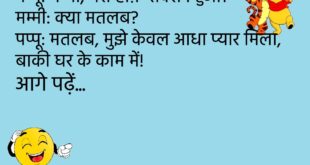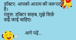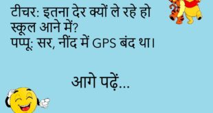 टीचर: इतना देर क्यों ले रहे हो स्कूल आने में? पप्पू: सर, नींद में GPS बंद था।😊😊😊 ****************************************** बबलू: मेरी बीवी मुझसे बहुत प्यार करती है। सोहन: कैसे? बबलू: हर महीने नोटिस देती है, “खर्च संभालो वरना तलाक!”😊😊😊 ****************************************** पप्पू: डॉक्टर साहब, मुझे भूलने की बीमारी हो गई है। डॉक्टर: कब से? पप्पू: कब से क्या?😊😊😊 ****************************************** पत्नी: सुनो जी, …
