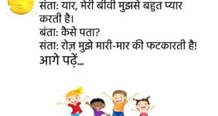 टीचर: अगर पृथ्वी से सूरज गायब हो जाए तो क्या होगा?पप्पू: सर, मोबाइल का रिचार्ज तो फ्री हो जाएगा!😊😊😊😊 ************************************** पत्नी: सुनिए जी, मुझे डाइट पर रहना है।पति: अच्छा! तो फिर आज रात मैं ही खाना खा लूंगा।😊😊😊😊 ************************************** बबलू: डॉक्टर साहब, मैं भूलने की बीमारी से परेशान हूँ।डॉक्टर: कब से?बबलू: कौन सी बीमारी?😊😊😊😊 ************************************** संता: यार, मेरी बीवी मुझसे …