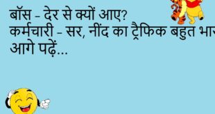 पत्नी – मुझे नई साड़ी चाहिए। पति – ठीक है, सपना देख लो।😊😊😊😊 ************************************** बच्चा – पापा, TV क्यों बंद है? पापा – बेटा, बिल नहीं भरा।😊😊😊😊 ************************************** दोस्त – शादी कैसी रही? संता – बारात तो मजेदार थी, बस दुल्हन किसी और की थी।😊😊😊😊 ************************************** पति – खाना क्यों नहीं बना? पत्नी – गैस नहीं थी। पति – तो …