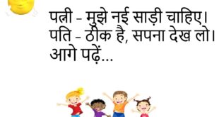 टीचर – Good Morning कब कहते हैं? पप्पू – जब सामने वाला गुड न लगे तो भी।😊😊😊😊 ********************************* लड़का – मेरी बीवी परी जैसी है। दोस्त – कैसी परी? लड़का – दिन-रात गायब रहने वाली।😊😊😊😊 ********************************* पत्नी – क्या तुम मुझे प्यार करते हो? पति – हाँ, वैसे ही जैसे मोबाइल को करता हूँ, हमेशा चार्ज में रखना पड़ता है।😊😊😊😊 …