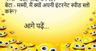 मम्मी – बेटा, पड़ोस में नई लड़की आई है। बेटा – मम्मी, ये जानकारी टॉप सीक्रेट रखो, पापा को मत बताना।😊😊😊😊 **************************************** पत्नी – मुझे हनीमून पर विदेश जाना है। पति – फिर तो सपना देखना पड़ेगा, वीज़ा फ्री है वहाँ।😊😊😊😊 **************************************** पप्पू – टीचर, आपके पति अच्छे हैं? टीचर – हां, लेकिन अच्छे लोग हमेशा दूसरों के होते हैं।😊😊😊😊 …