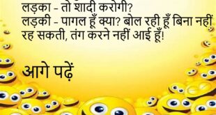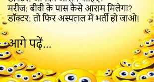 पत्नी – सुनिए जी, क्या मैं मोटी लगती हूँ? पति – नहीं तो, तुम तो डीलक्स मॉडल हो! अब पति अस्पताल में भर्ती है… 😜 *********************************** छात्र – सर, पेपर में एक सवाल बहुत मुश्किल था। टीचर – कौन सा? छात्र – नाम और रोल नंबर लिखने वाला! 😂 *********************************** लड़की – मैं तुम्हारे बिना नहीं रह सकती! लड़का – …