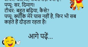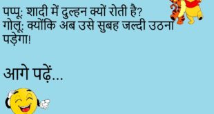 पप्पू: मम्मी, पापा कहां हैं? मम्मी: वो बैंक गए हैं। पप्पू: ATM में पैसे डालने या निकालने?😂😂😂😂😂 ************************************* टीचर: शरारत क्यों कर रहे हो? राजू: आदत से मजबूर हूं मैडम!😂😂😂😂😂 ************************************* गोलू: तुम तो बहुत स्मार्ट हो! पप्पू: हां, बचपन से ही Google का कजिन हूं!😂😂😂😂😂 ************************************* पप्पू: शादी में दुल्हन क्यों रोती है? गोलू: क्योंकि अब उसे सुबह जल्दी …