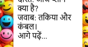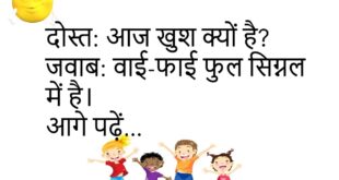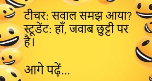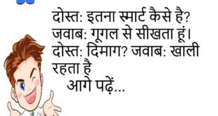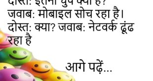 दोस्त: इतना थका क्यों है? जवाब: कल जल्दी सोया था। दोस्त: तभी आज नींद पूरी नहीं हुई 😂 ********************************** मां: फोन क्यों चुप है? बेटा: नेटवर्क नहीं है। मां: तो गेम कैसे चल रहा है? 😏 ********************************** मां: सब्जी क्यों नहीं खाई?बेटा: वजन बढ़ रहा है।मां: तो मिठाई क्यों खा रहा है? 😏 ********************************** दोस्त: इतना स्मार्ट कैसे है?जवाब: गूगल …