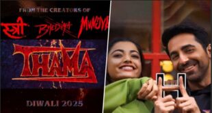 मैडॉक फिल्म्स ने दिवाली 2025 पर रिलीज़ होने वाली रोमांटिक वैम्पायर थ्रिलर थामा का पहला लुक 18 अगस्त, 2025 को जारी किया, जिसने दर्शकों को अपने आकर्षक कैरेक्टर पोस्टर्स से उत्साहित कर दिया। आदित्य सरपोतदार द्वारा निर्देशित इस फिल्म में आयुष्मान खुराना, रश्मिका मंदाना, नवाजुद्दीन सिद्दीकी और परेश रावल मुख्य भूमिकाओं में हैं, जो मैडॉक सुपरनैचुरल यूनिवर्स में रोमांस, हॉरर …