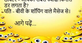 बॉस – काम क्यों नहीं किया?कर्मचारी – सर, नेट नहीं चल रहा था।बॉस – लेकिन ये तो ऑफ़लाइन काम है!कर्मचारी – सर, आदत है अब नेट की।😊😊😊😊 ***************************************** बच्चा – पापा, आपकी शादी क्यों हुई थी?पापा – ताकि तुझ जैसे सवाल पूछने वाले पैदा हों।😊😊😊😊 ***************************************** पत्नी – आप मुझे शॉपिंग पर क्यों नहीं ले जाते?पति – क्योंकि वहाँ सेल्फ-ड्राइविंग …