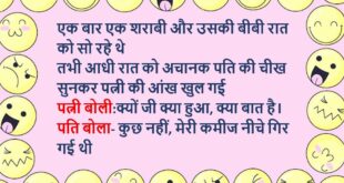 डॉक्टर: क्या तुम शराब पीते हो? पप्पू: नहीं डॉक्टर साहब, मैं तो सिर्फ “खुशबू” लेता हूं… फ्री में!😊😊😊😊 ************************************** गोलू: ये दुनिया गोल क्यों है? पप्पू: ताकि जब रास्ता भटको तो वहीं लौट आओ – बीवी के पास!😊😊😊😊 ************************************** पत्नी: शादी के बाद क्या बदल गया? पति: पहले खुश रहते थे… अब खुश दिखना पड़ता है।😊😊😊😊 ************************************** पप्पू: मम्मी, मुझे …