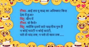 पप्पू- पापा आपने कहा था ना की मेहनत इतनी खामोशी से करो की सफलता शोर मचाए पिता- हां पप्पू- मेरी गर्लफ्रेंड को बेटा हुआ है पिता बेहोश……🤣🤣🤣😝😝😝😆🤣 ************************************************************************************** टीचर- उसने कपड़े धोए और उसे कपड़े धोने पड़े… इन दोनों वाक्यों में अंतर बताओ? गप्पू – सर, पहले वाक्य से व्यक्ति के अविवाहित होने का पता चलता है जबकि दूसरे वाक्य …