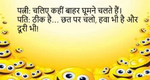 डॉक्टर- आपको कोई पुरानी बीमारी है, जो आपके शरीर को धीरे-धीरे खा रही है मरीज- थोड़ा धीरे बोलियें डॉक्टर साहब, वो बाहर ही बैठी है….🤣🤣🤣😝😝😝😆🤣 ************************************************************************************** राजू- समय रहते शादी कर लेनी चाहिए सुरेश- ऐसा क्यों? गर्लफ्रेंड डिप्रेशन में साथ नहीं देती, बीवी ही काम आती है जो भले चैन से जीने न दे, पर मरने भी नहीं देगी…..🤣🤣🤣😝😝😝😆🤣 ************************************************************************************** …