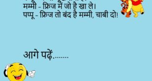 टीचर – बताओ बच्चो, आलसी का विलोम शब्द क्या होगा? छात्र – जल्दीसी! 😄 *********************************** डॉक्टर – आपको आराम की सख्त जरूरत है। मरीज – लेकिन डॉक्टर साहब, मेरी बीवी तो आराम ही नहीं करने देती। डॉक्टर – बहुत बढ़िया, फिर मैं आपकी बीवी को दवाई लिख देता हूँ! 😂 *********************************** पप्पू – मम्मी भूख लगी है! मम्मी – फ्रिज …