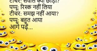 दोस्त: पढ़ाई कब करेगा? पप्पू: बहुत जल्द दोस्त: कब? पप्पू: कल वाला कल 😆 ********************************** मां: कमरे की सफाई? पप्पू: हो गई मां: कब? पप्पू: गंदगी फैलाने से पहले 😜 ********************************** बॉस: टाइम पर क्यों नहीं आए? पप्पू: घड़ी गलत थी बॉस: रोज़? पप्पू: टाइम से दुश्मनी है 😂 ********************************** दोस्त: इतना थका क्यों? पप्पू: आराम करके दोस्त: कैसे? पप्पू: …